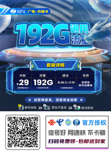 [好卡推荐]广电升卿卡 29元/月享192G全国通用流量