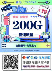 🚀移动浙舞卡【宁波专属】19元/月享200G全国通用+100分钟通话