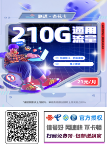 [好卡推荐] 联通杏花卡 21元/月享210G通用+600分钟语音通话