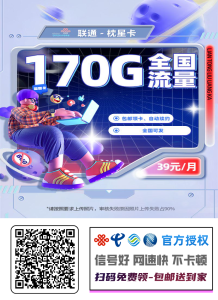 [好卡推荐] 联通枕星卡【三照发全国】 39元/月享140G通用+30G定向+0.15/分钟通话
